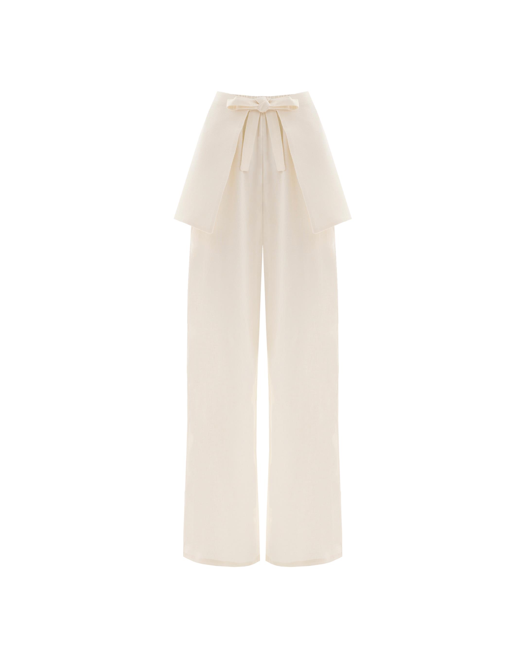 These Dove trousers are elevated with a layered fold-over pockets and waist tie, giving a clean silhouette a sculptural, modern twist.
