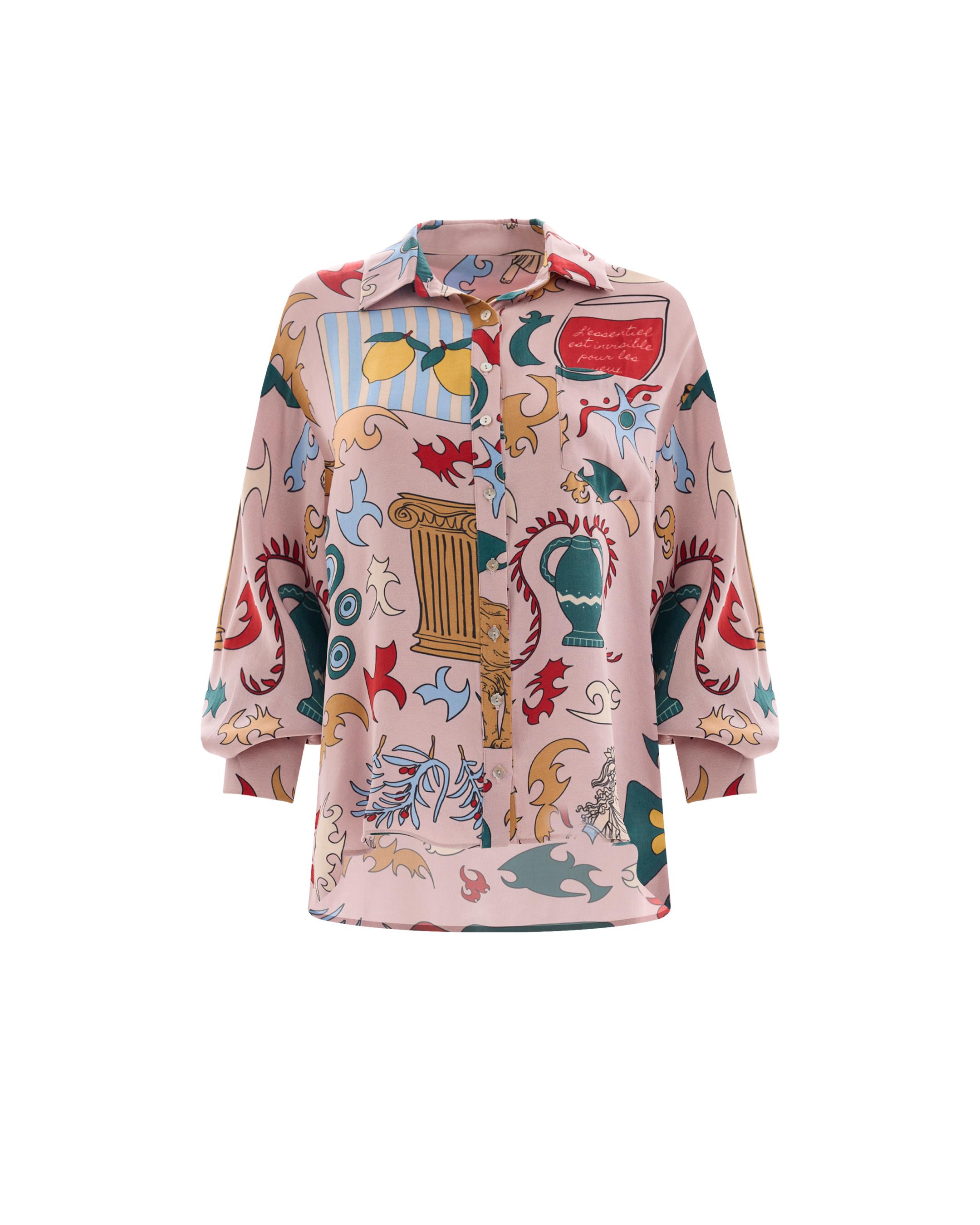 Crafted from high-quality fabric, this shirt is brought to life with painterly, mythic-inspired motifs, turning a relaxed silhouette into a bold canvas of color and storytelling.