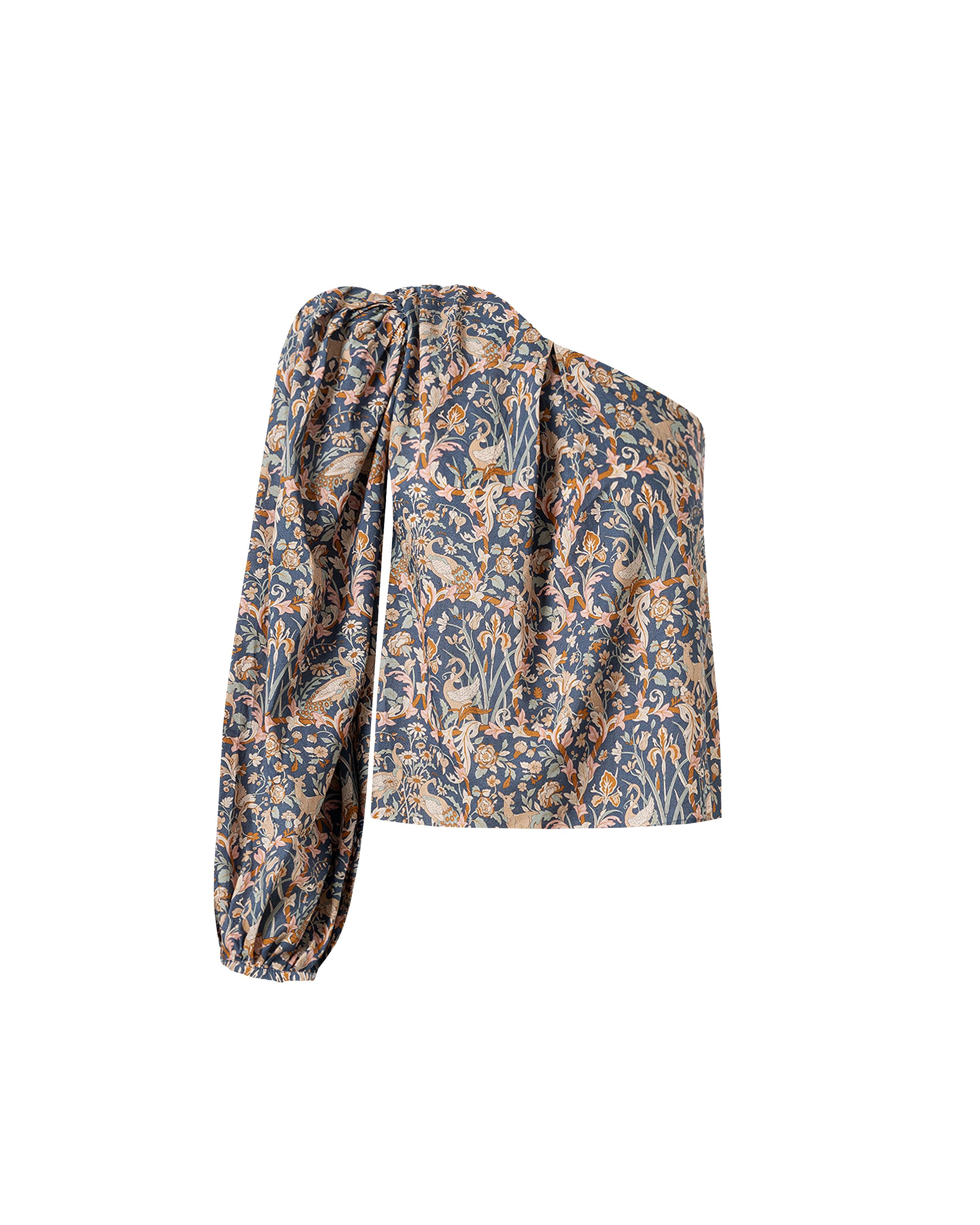This one-shoulder floral top with its airy sleeve feels easy yet striking, the kind of piece you throw on and instantly look put together.