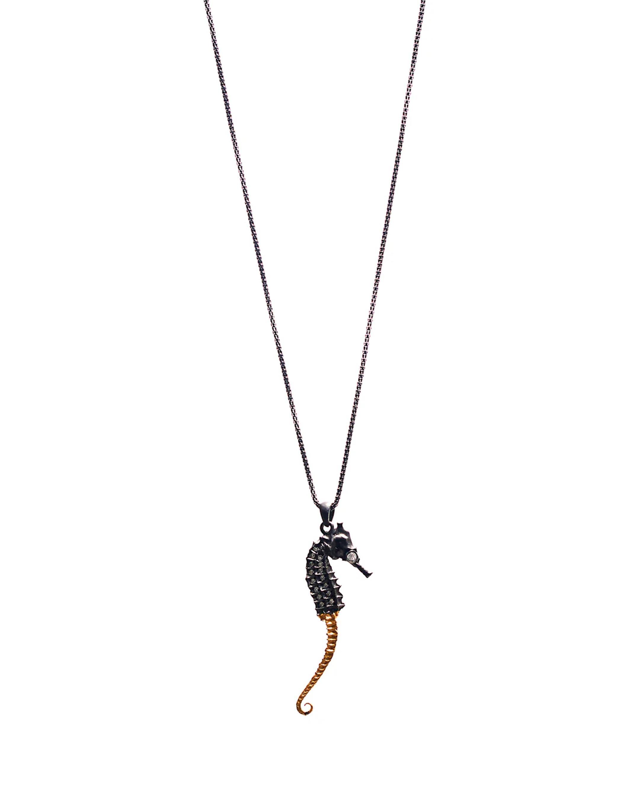 A seahorse pendant that feels like a little treasure from the sea, hanging from a chain made for special days.