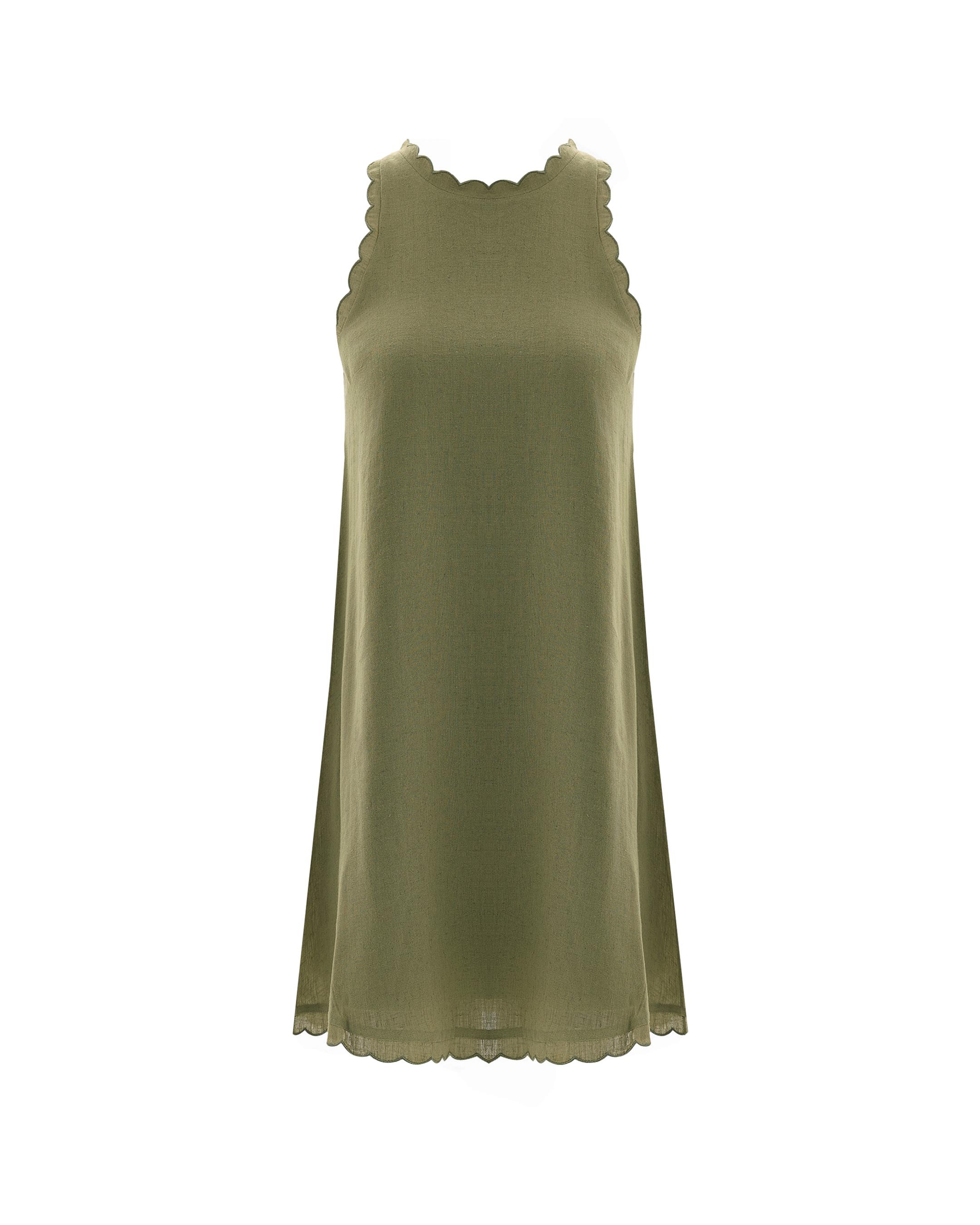 Calia Khaki Green Mini Linen Dress (MNC0004)
