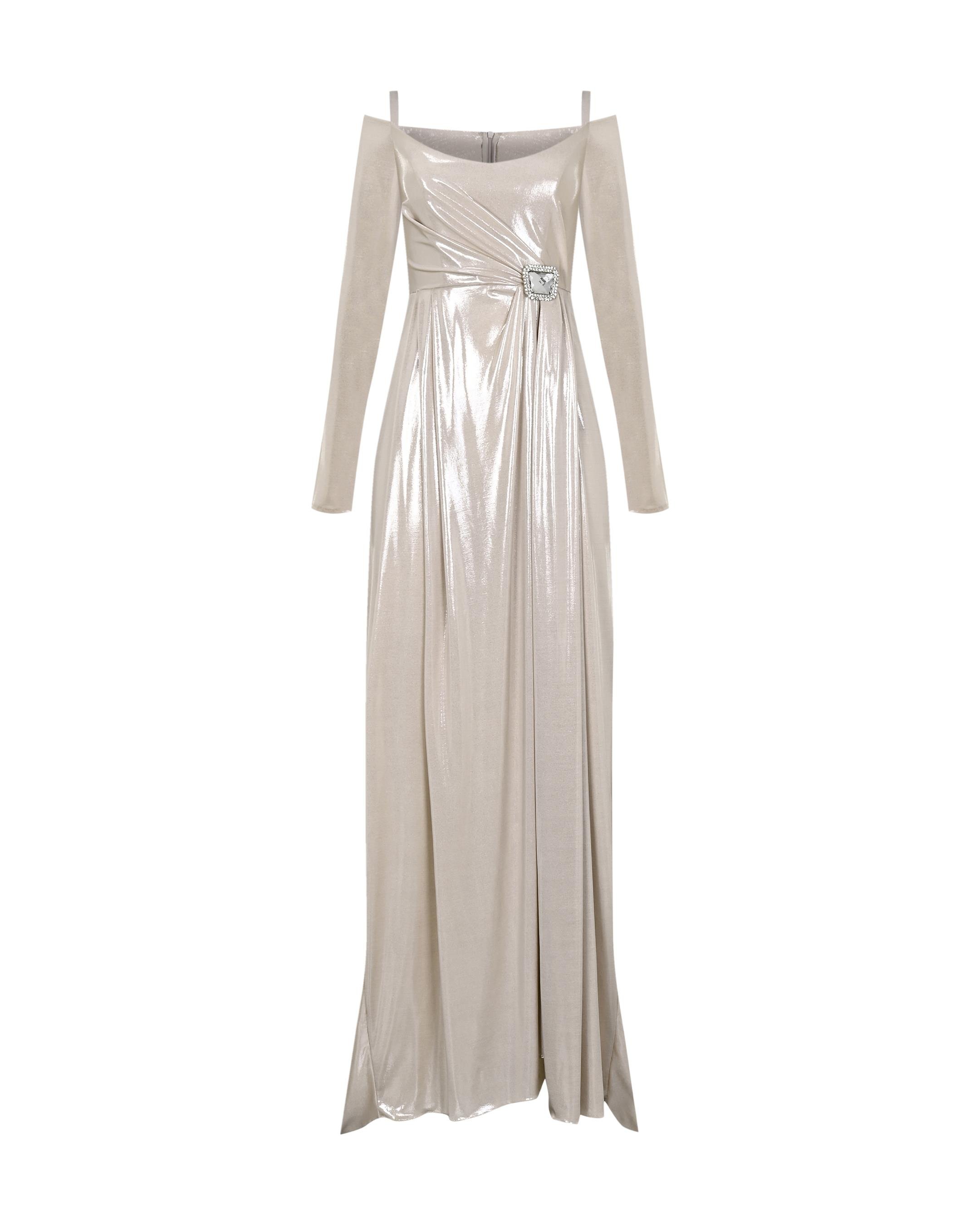 This off-the-shoulder Daisy gown, cut from fluid metallic fabric, exudes a sultry elegance that feels both cinematic and timeless. Style it with sleek heels and minimal accessories for modern formal occasions.
