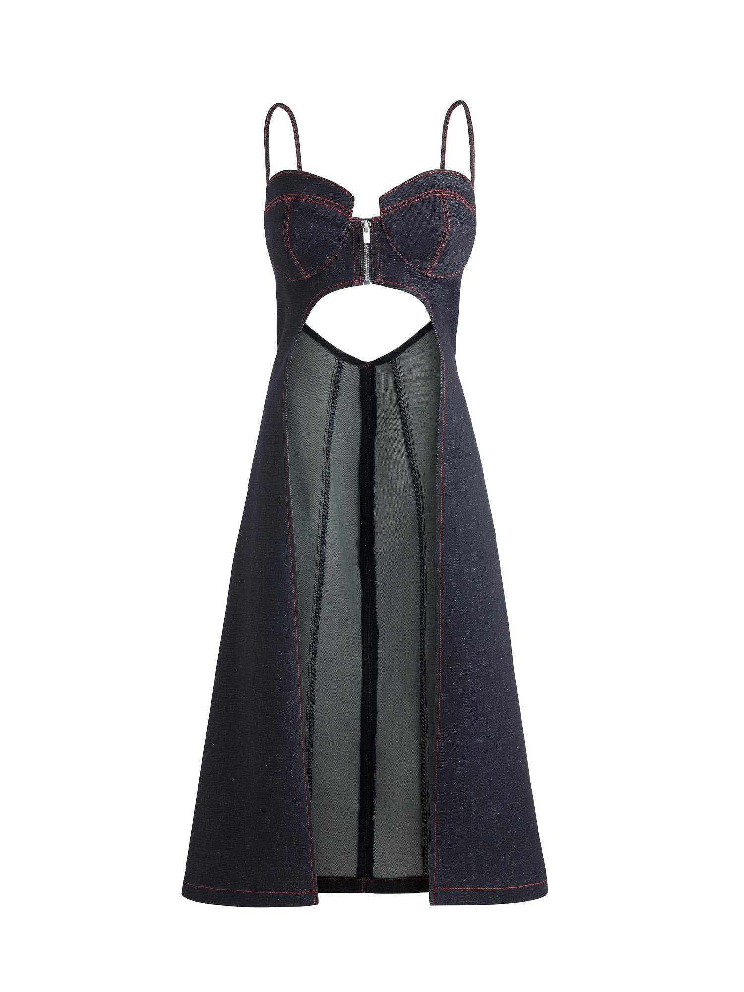 The Davidson Denim Dress turns classic denim into something refined, with delicate straps, a bold front zip, and a hem.