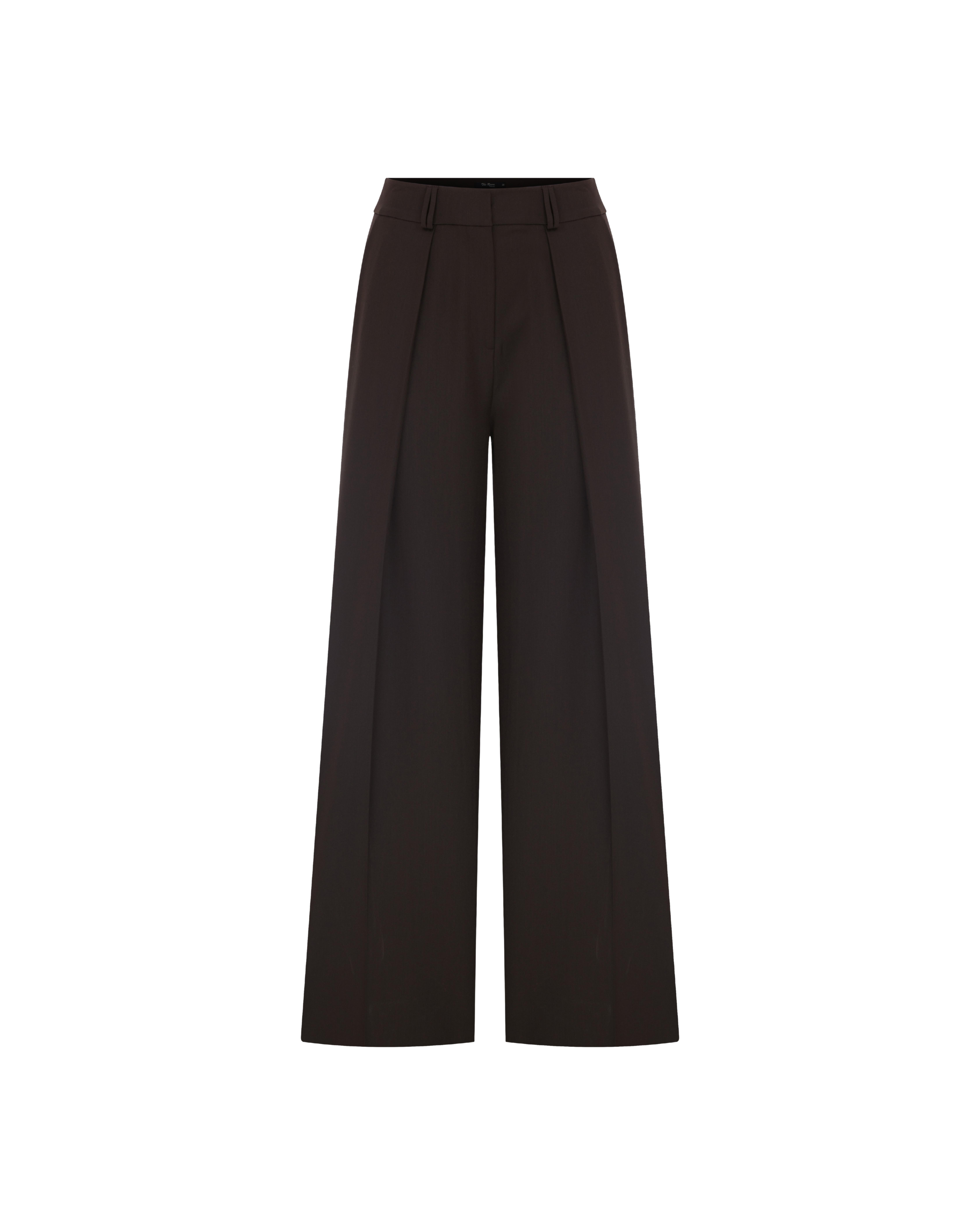 Cut from a polished fabric blend, these wide-leg trousers bring tailored structure with an effortless f luidity.