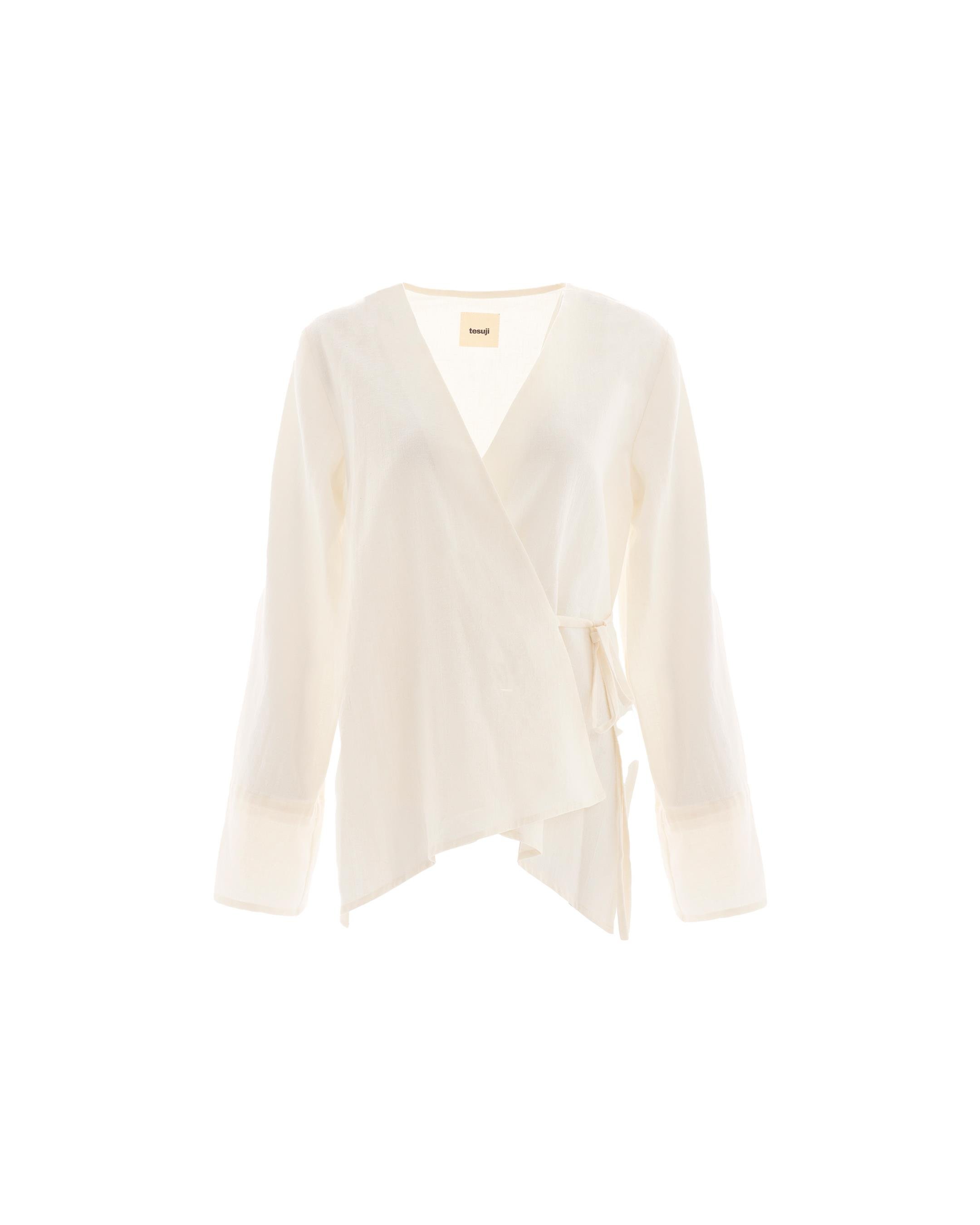 This Dove wrap shirt balances ease and refinement, with its wide sleeves and slim side ties that lend a subtle, undone charm.
