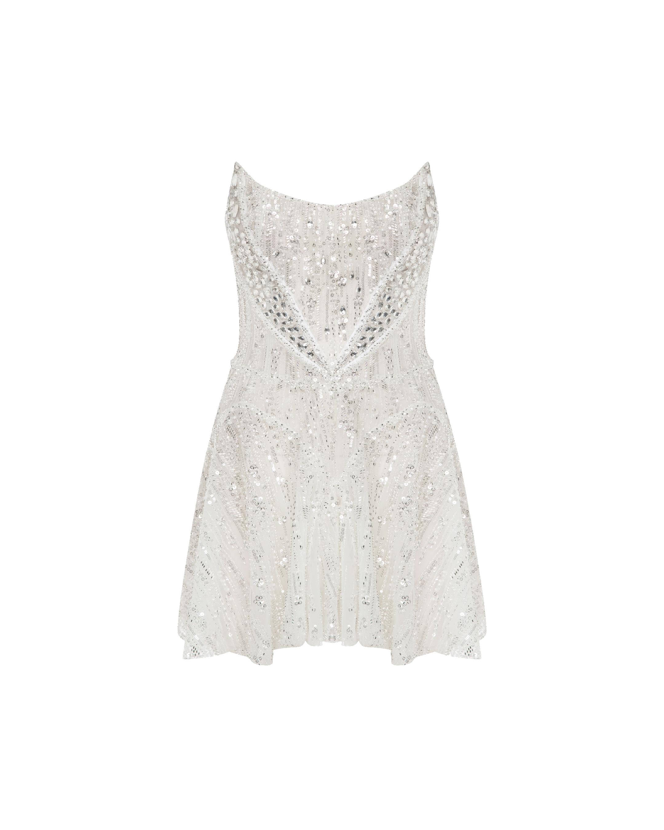 This sparkling Emma dress is crafted with a corset-style sequined bodice and flared skirt, delivering a playful yet glamorous party look. Style it with heeled sandals and a clutch for parties or evening events.