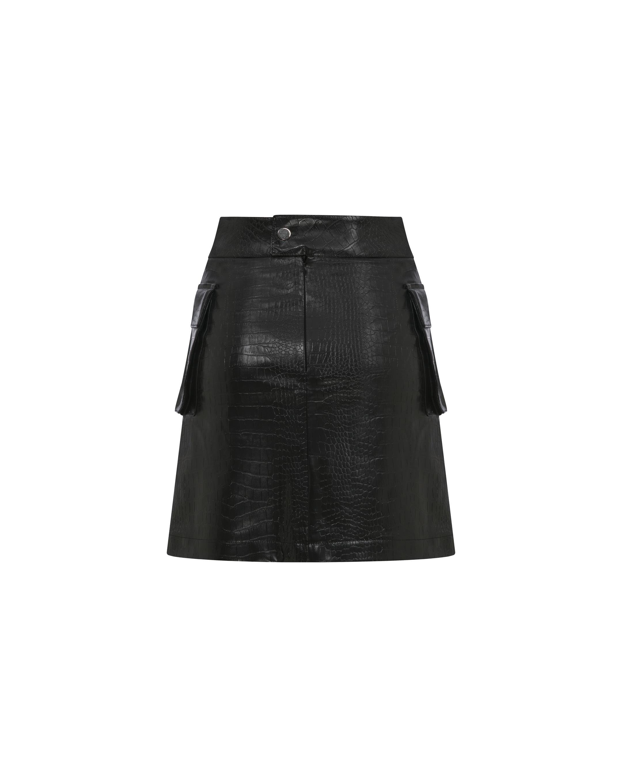 Cut from croc-effect faux leather, this mini skirt is designed in a structured shape, bringing a bold yet versatile edge to day-to-night styling.