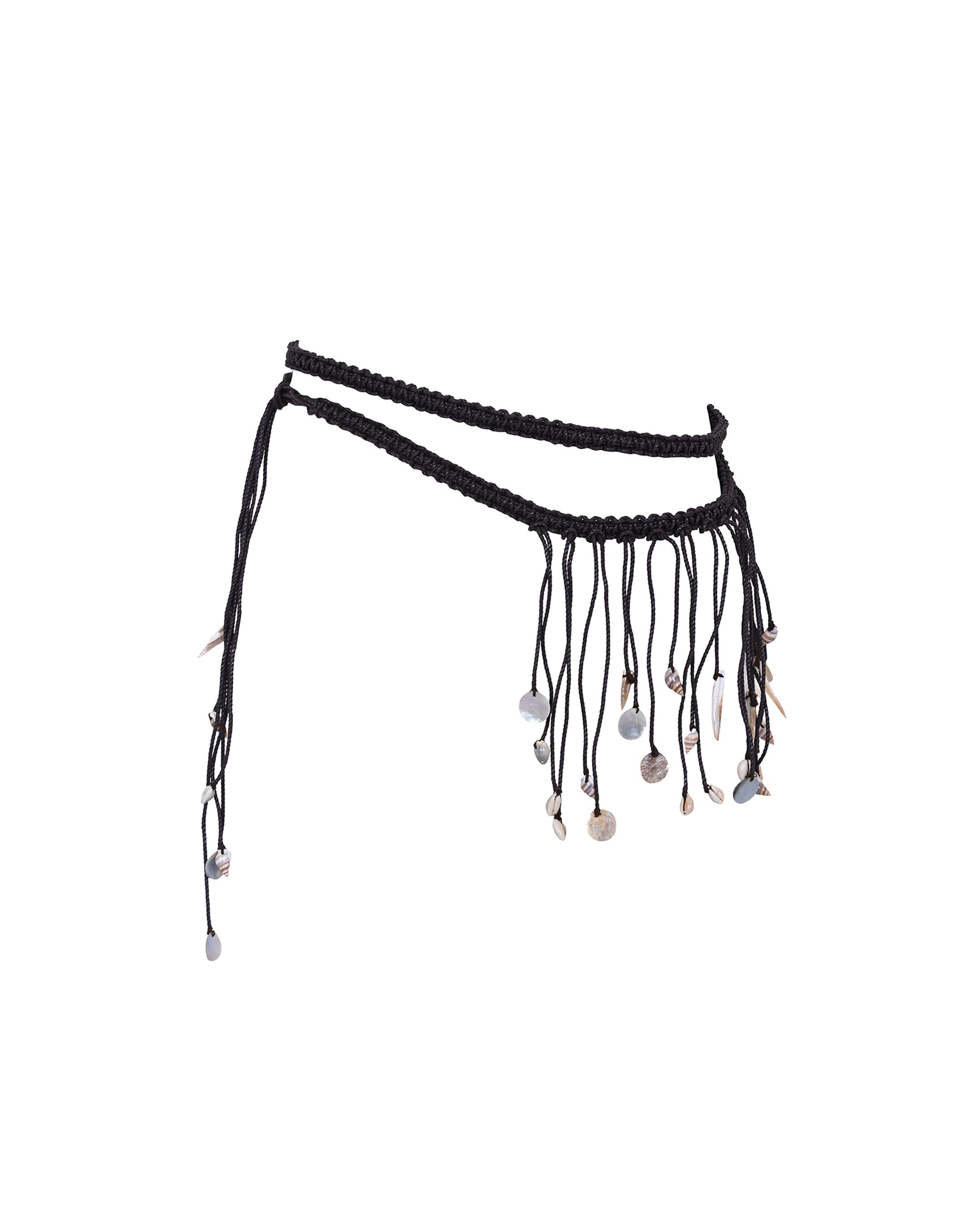 • Leather, handmade Macrame Belt with natural sea shells and fringes