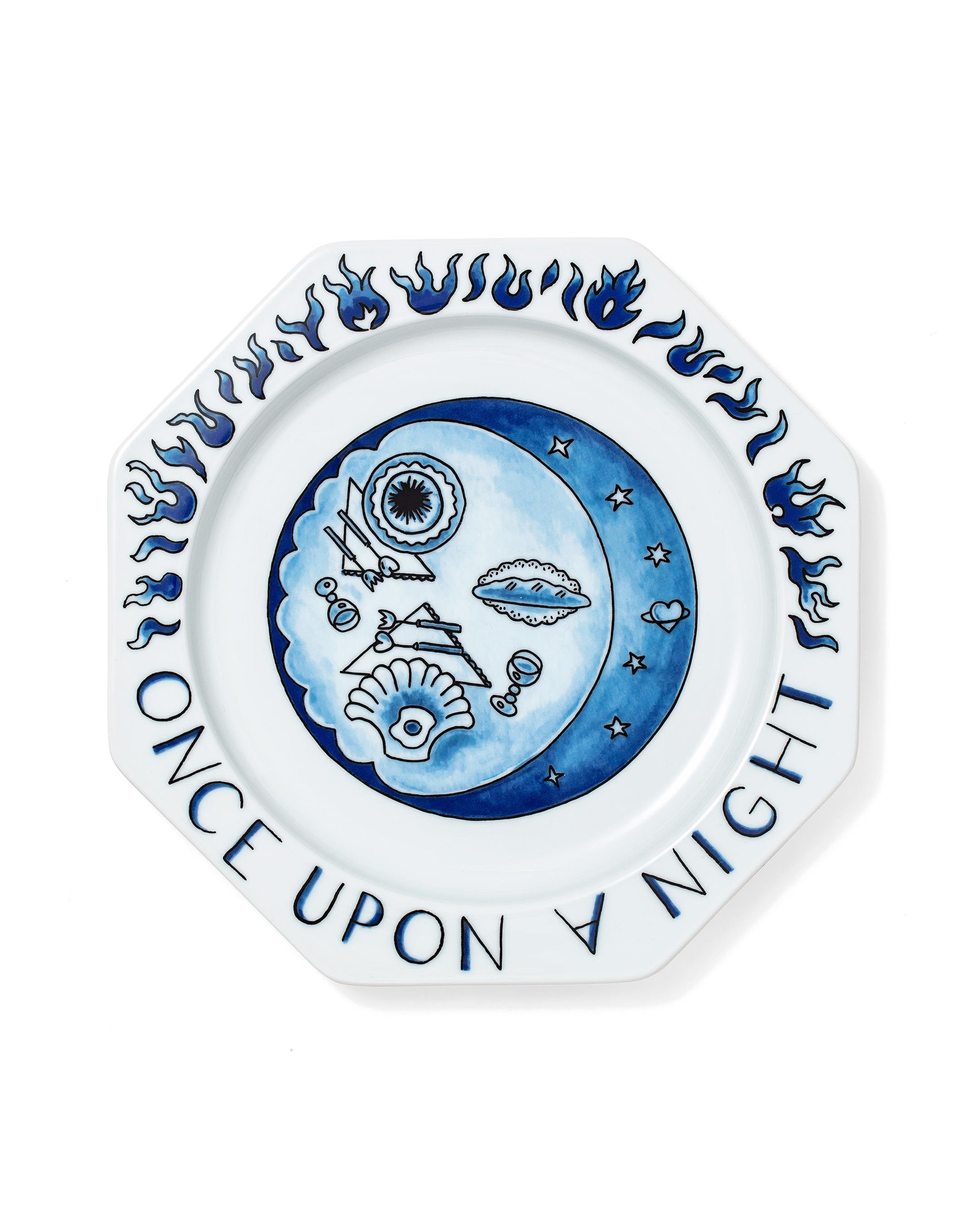 The Formu Moonlit Dinner Plate, designed for children, is presented in a special peach-toned box along with the storybook that inspired the hand-drawn illustration on the plate.