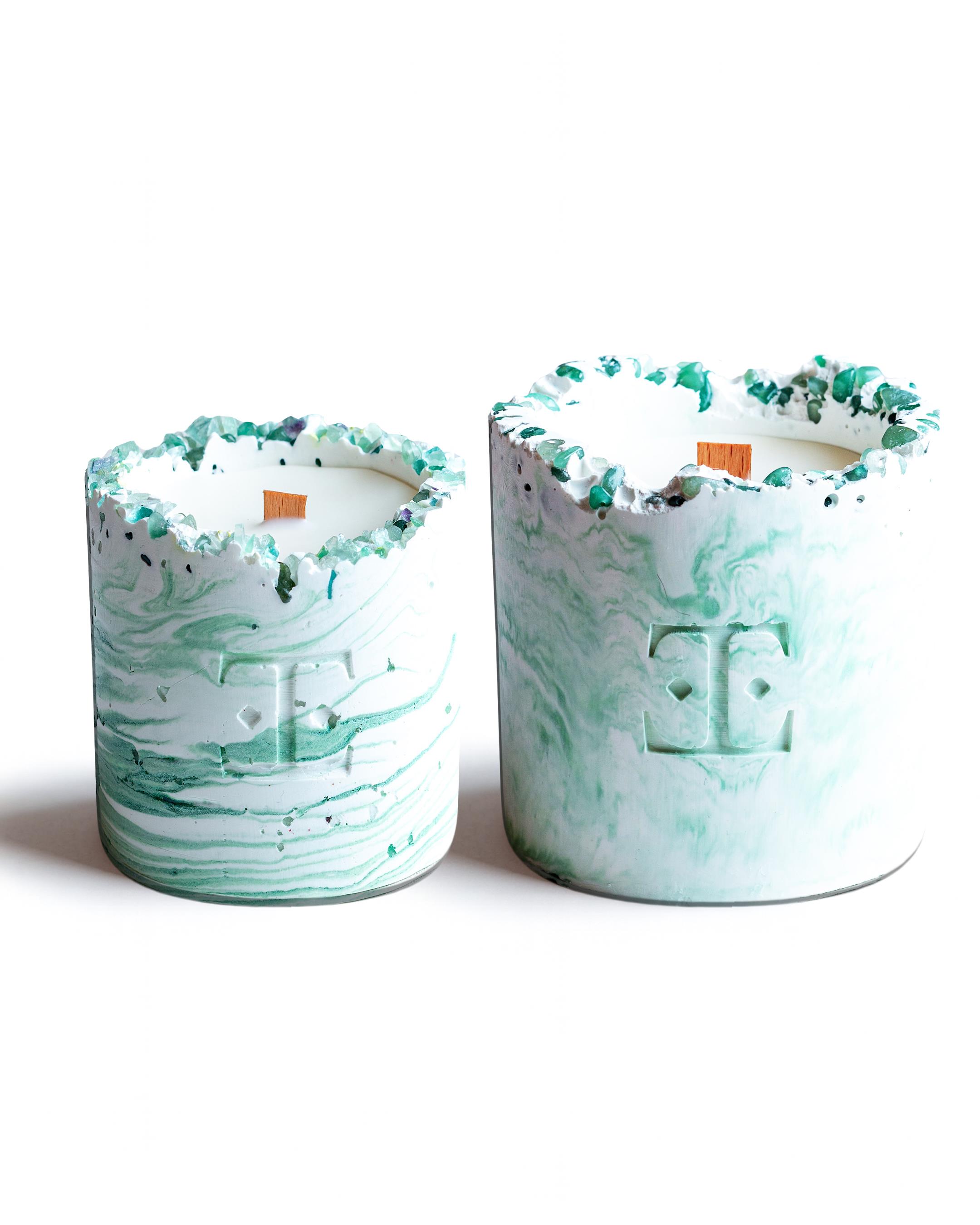 Mystic Green Gemstone Candle Set Moon and Fig Gemstone Candle Set Fresh Bloom Gemstone Candle Set Silver Glow Gemstone Candle Set