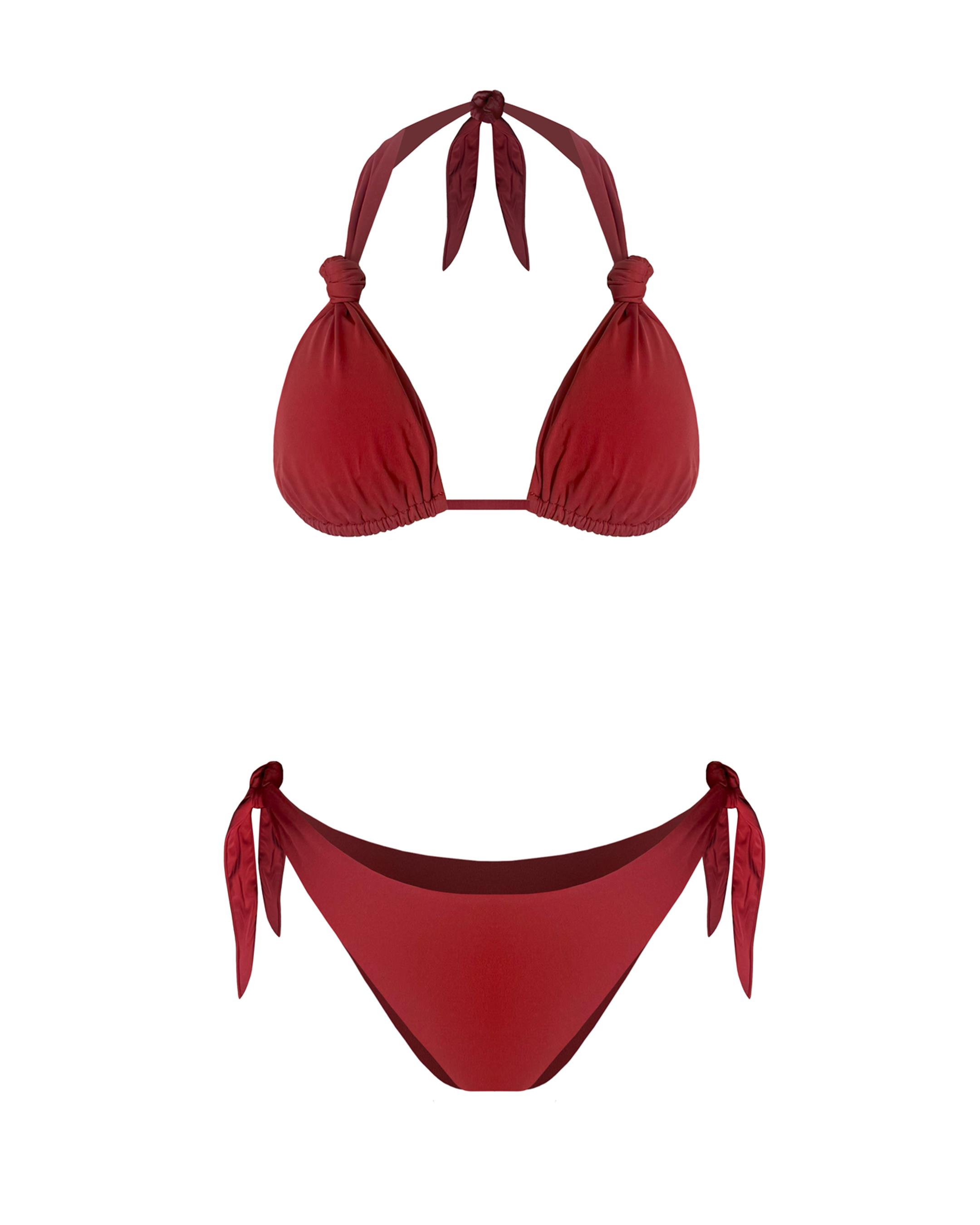 In a deep red hue, this Saia bikini set will be a signature piece for beach parties.