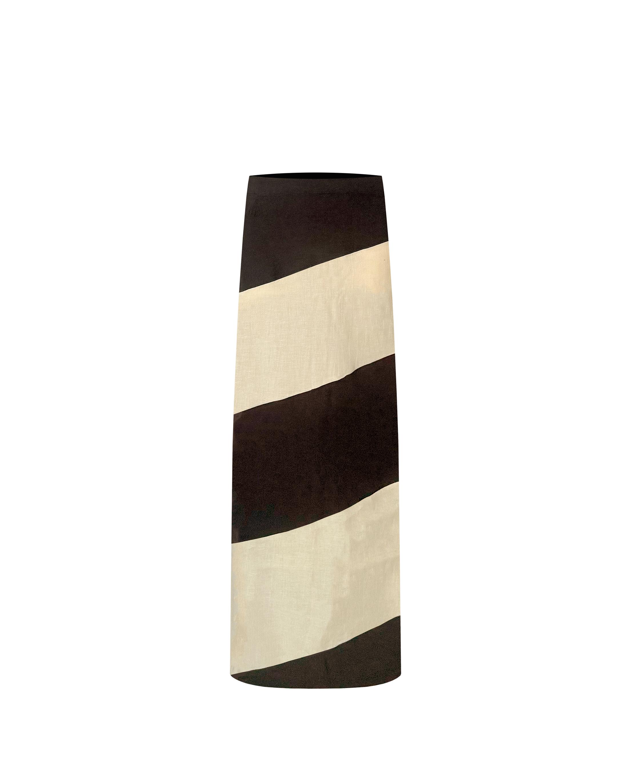 • Maxi length skirt • High-rise waist • Straight silhouette • Diagonal stripe panels in black and off-white • Invisible zipper on side for closure • Fabric: Linen • Handwash or dry cleaning is recommended
