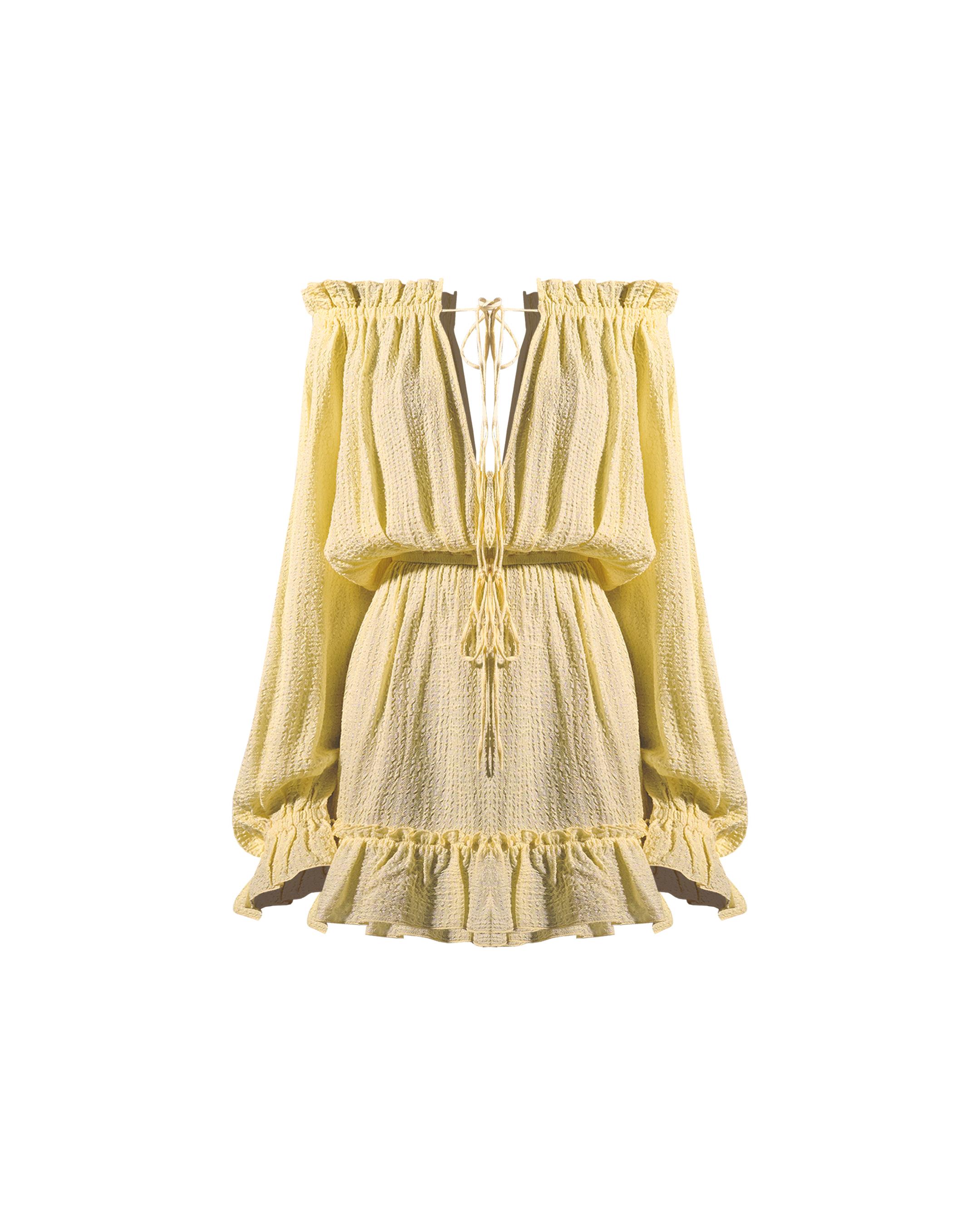 Sunny and light, this off-shoulder dress is what you were looking for warm afternoons.
