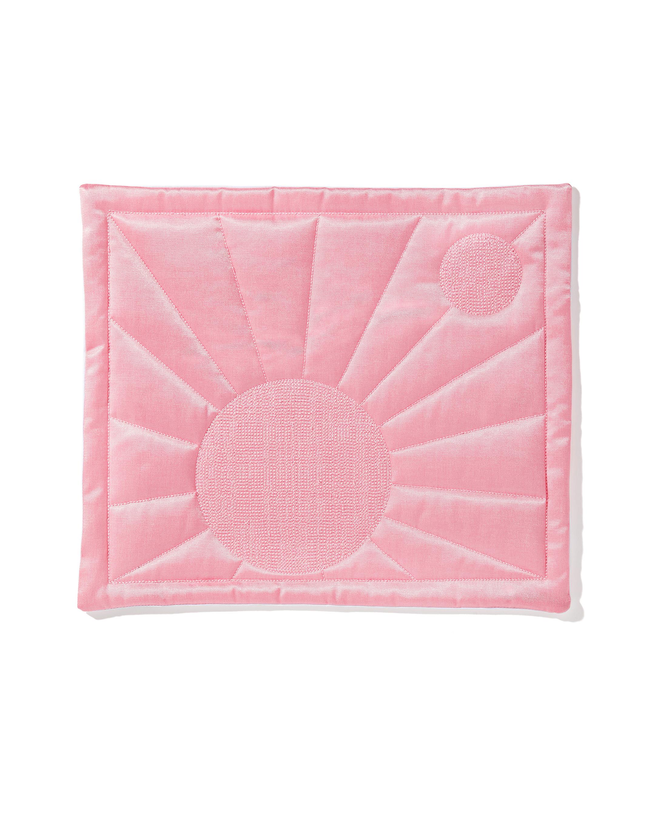 The table placemat in Baron Venus’ signature pastel hue, inspired by Istanbul’s traditional yorgan techniques, is handmade in Turkey with a softly cushioned finish for comfort at the table.