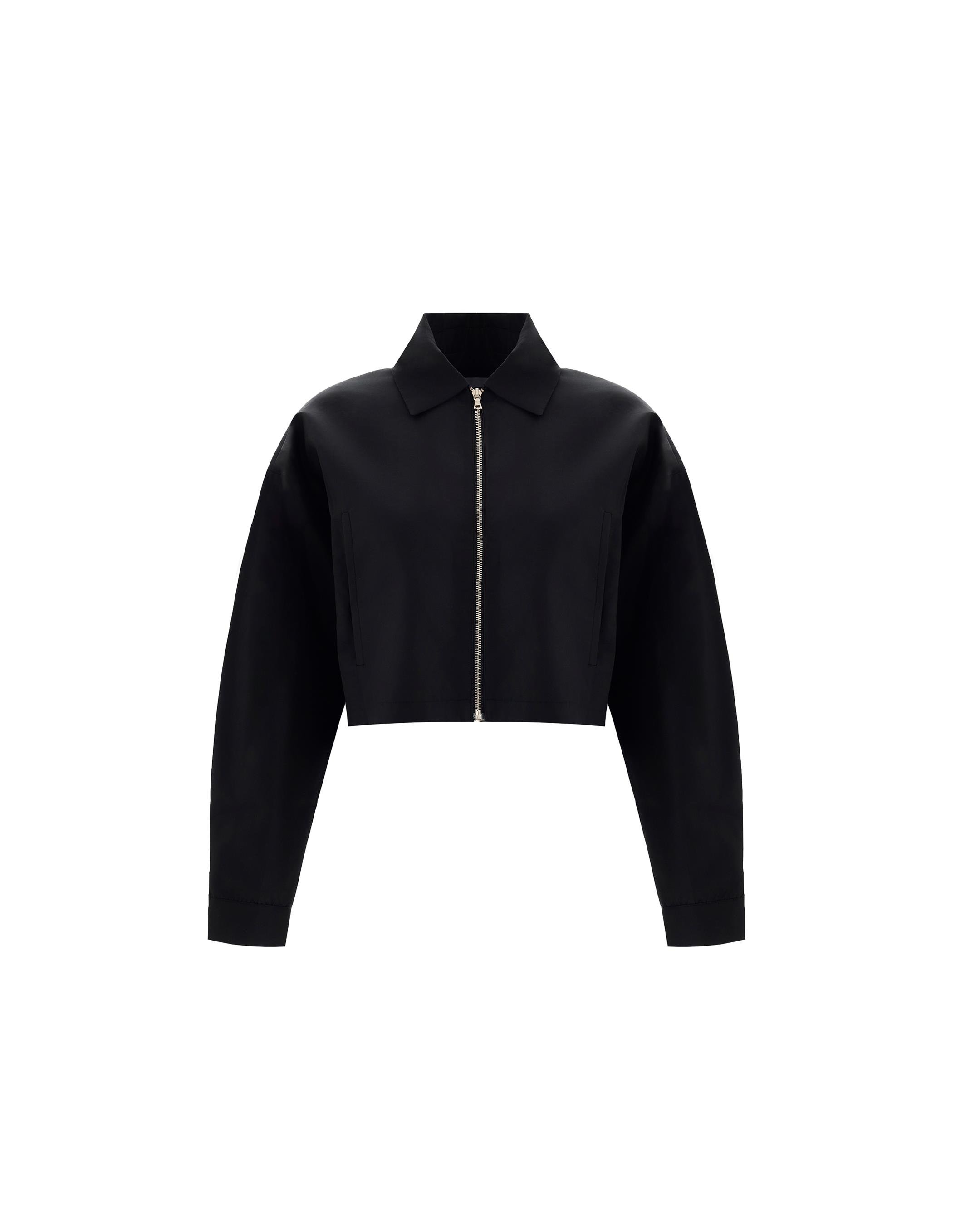 Minimalist and versatile, this cropped jacket is tailored with clean lines and a sharp zip front, making it an effortless layer to style from denim to dresses.