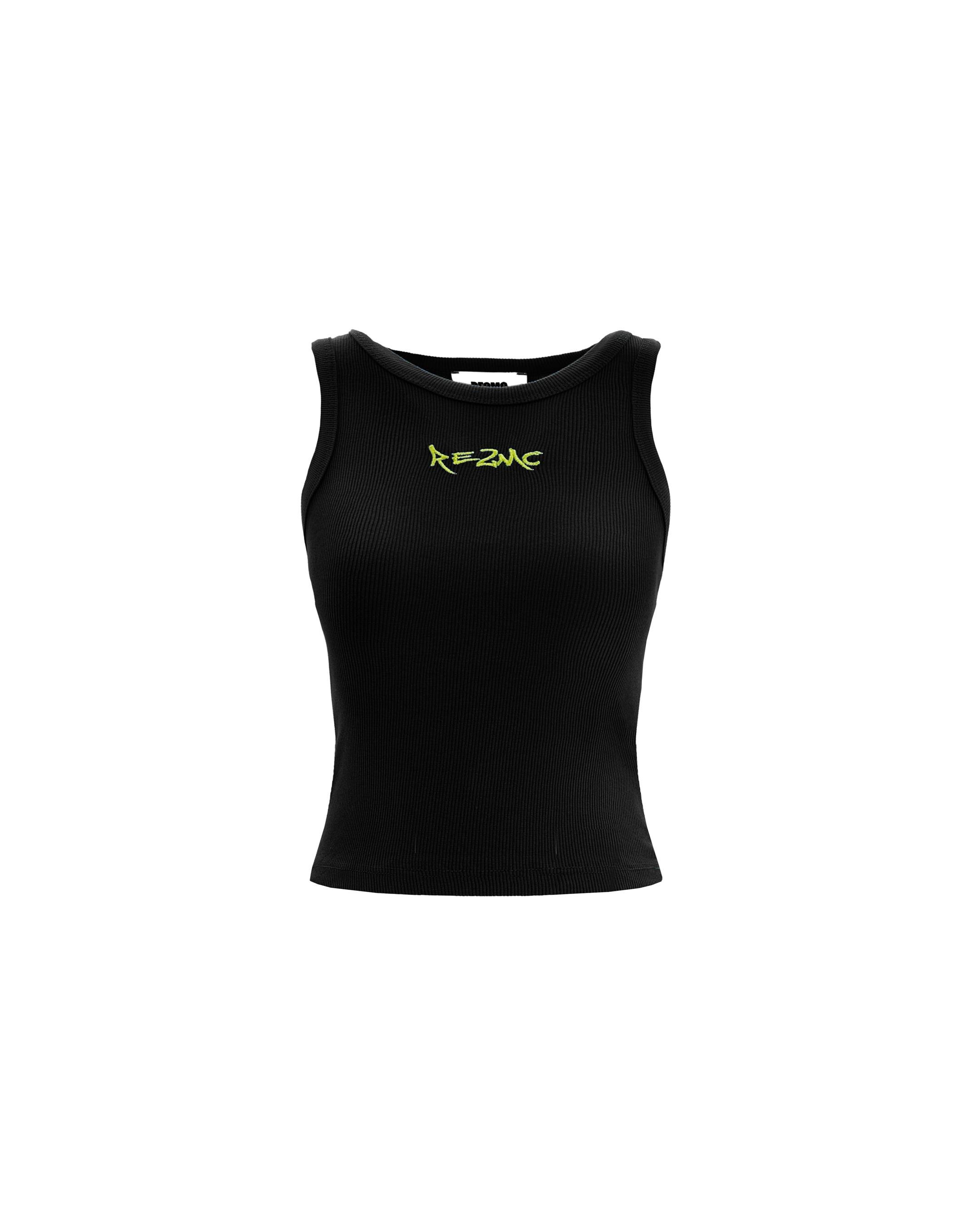 Cut for a sleek fit, this cropped tank is elevated by its racer-front silhouette and bold neon logo detail.