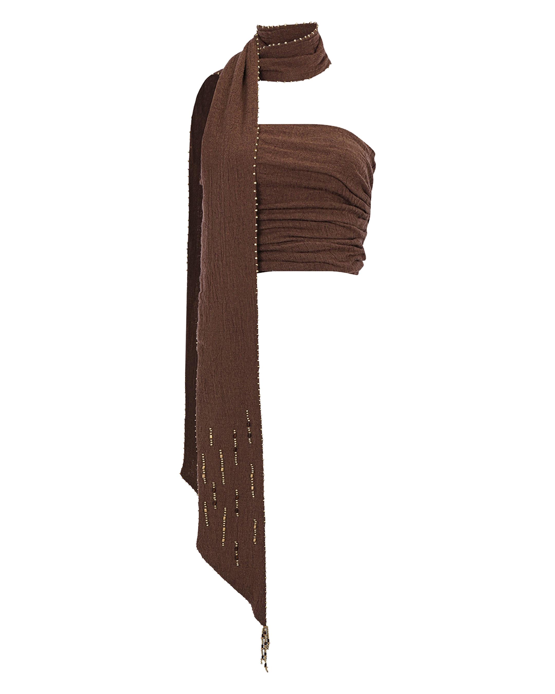 Effortless and versatile, the textured Tierra top with its matching scarf brings a sleek yet relaxed elegance look with a soft, crinkled finish and subtle detailing.