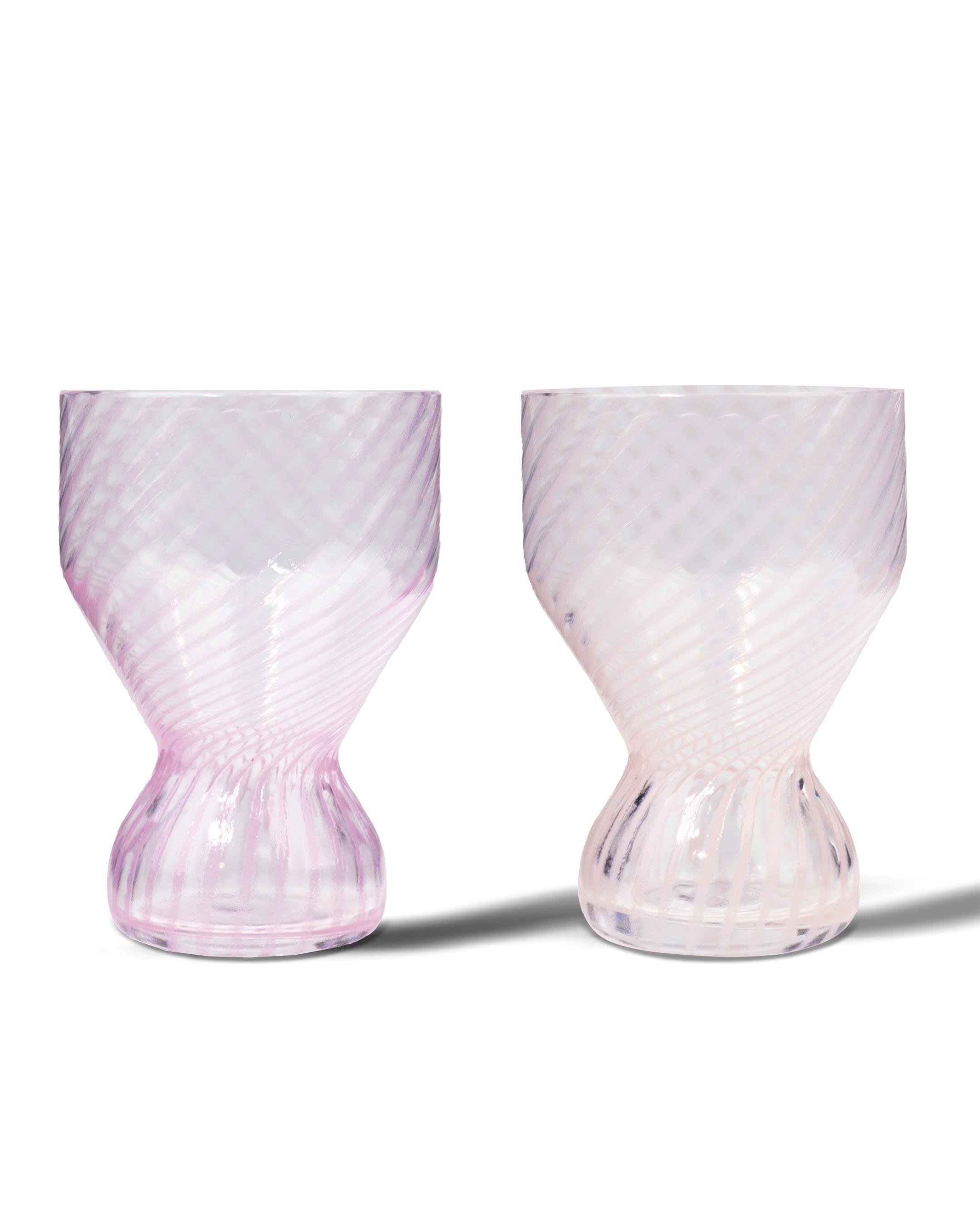 The ‘TWISTED PINK’ glasses feature softly mismatched pink and peach stems with seashell-inspired swirls that catch the light — perfect for refined entertaining or gifting.